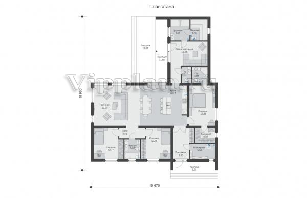 | Размеры дома: | 18.96м×15.67м |